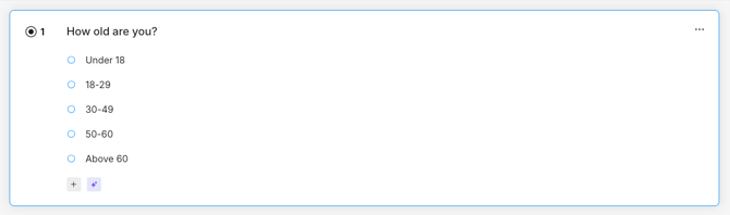 In this example, we instructed the Paste editor to create a [single-select] question titled “How old are you?” with the answer choices listed immediately after the title.